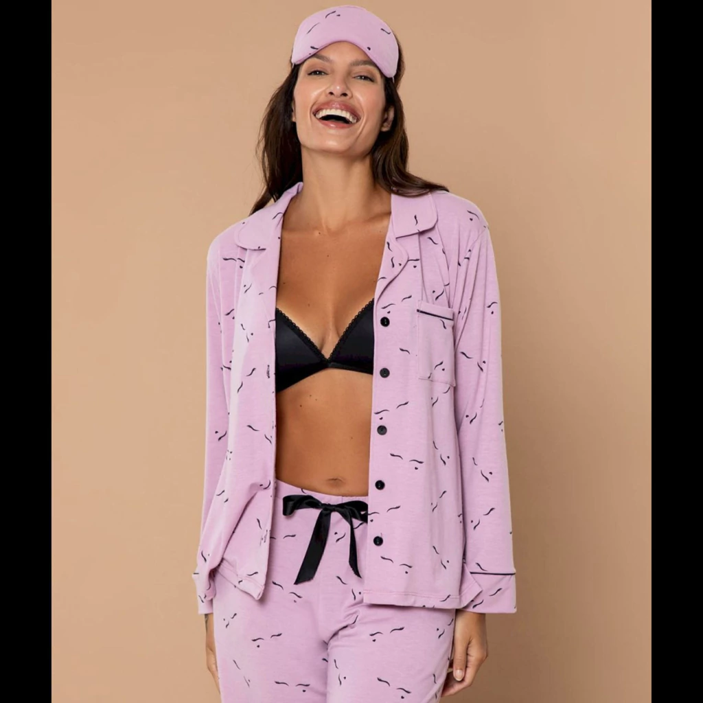 PIJAMA C/CARTERITA DETALLE EN PUÑO Y PANTALON FLOREADO RECTO (L25374)