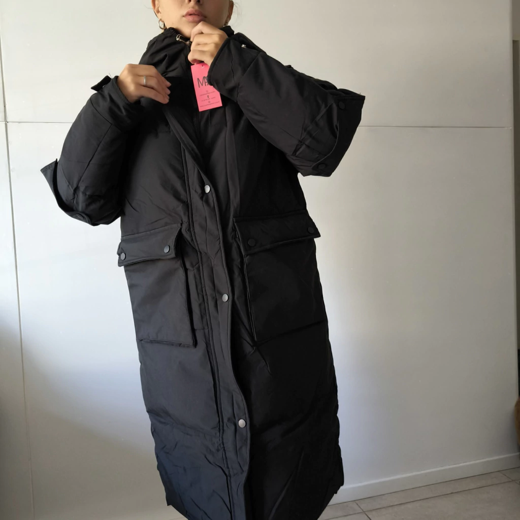 PUFFER LARGA CON BOLSILLOS Y BOTONES EN LOS CODOS (CP2506)